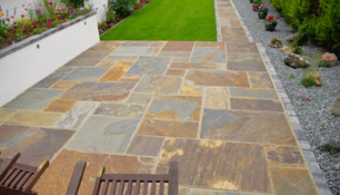 A slate paving with a blend of gold, orange, white and cream tones. Stonedepo's Golden White...